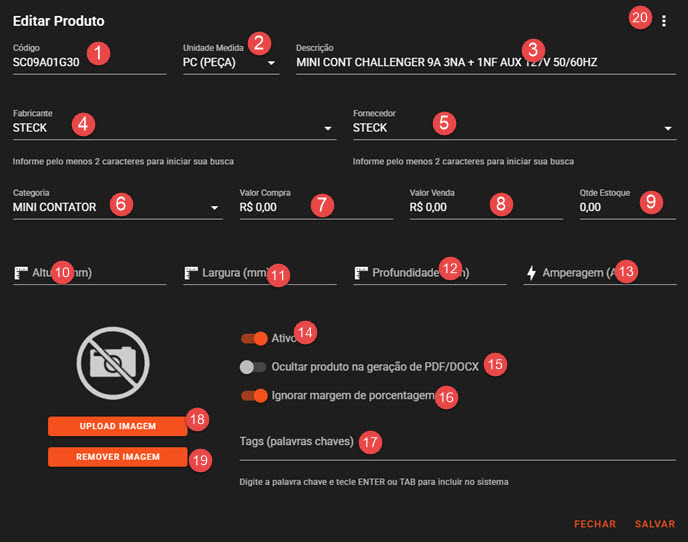 Upload da imagem: 18 realiza o upload da imagem do produto;
