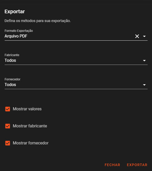 Caso deseje exportar essa lista, basta clicar no botão "Exportar". Na próxima tela teremos as configurações básicas da exportação como formato, tipo a ser exportado entre outros.