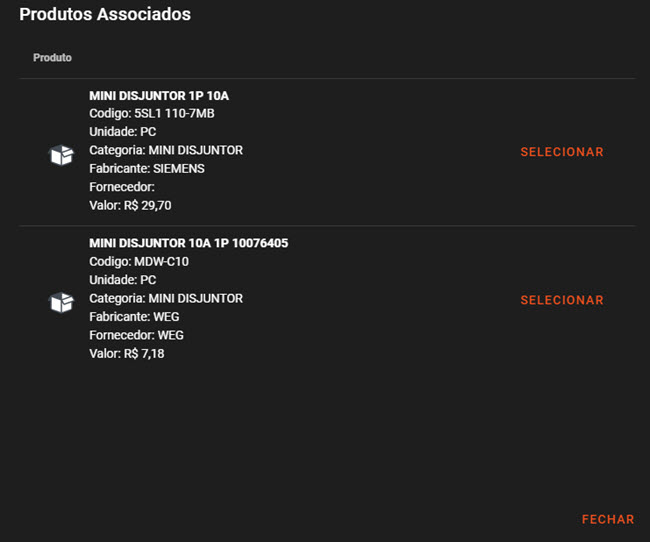 Substituir produto associado: faz a substituição do produto por outro através de uma lista de produtos associados;