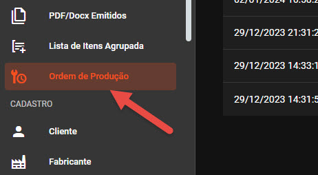 - Clique no ícone de gerenciamento de ordem de produção;